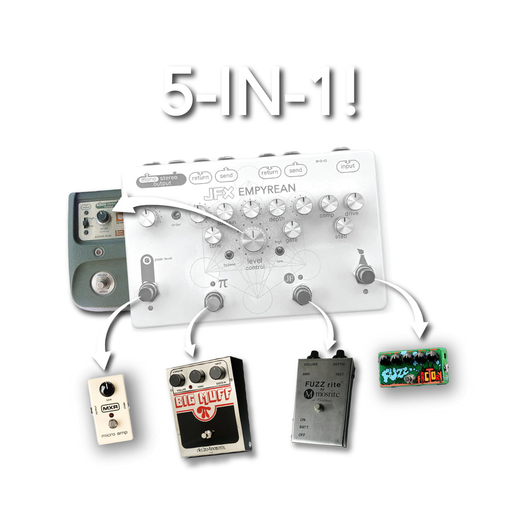 Unleash your inner John mother-fucking Anthony Frusciante with the Empyrean, a 5-in-1 multi-effect pedal that is designed to bring you the essence of John's signature sound.