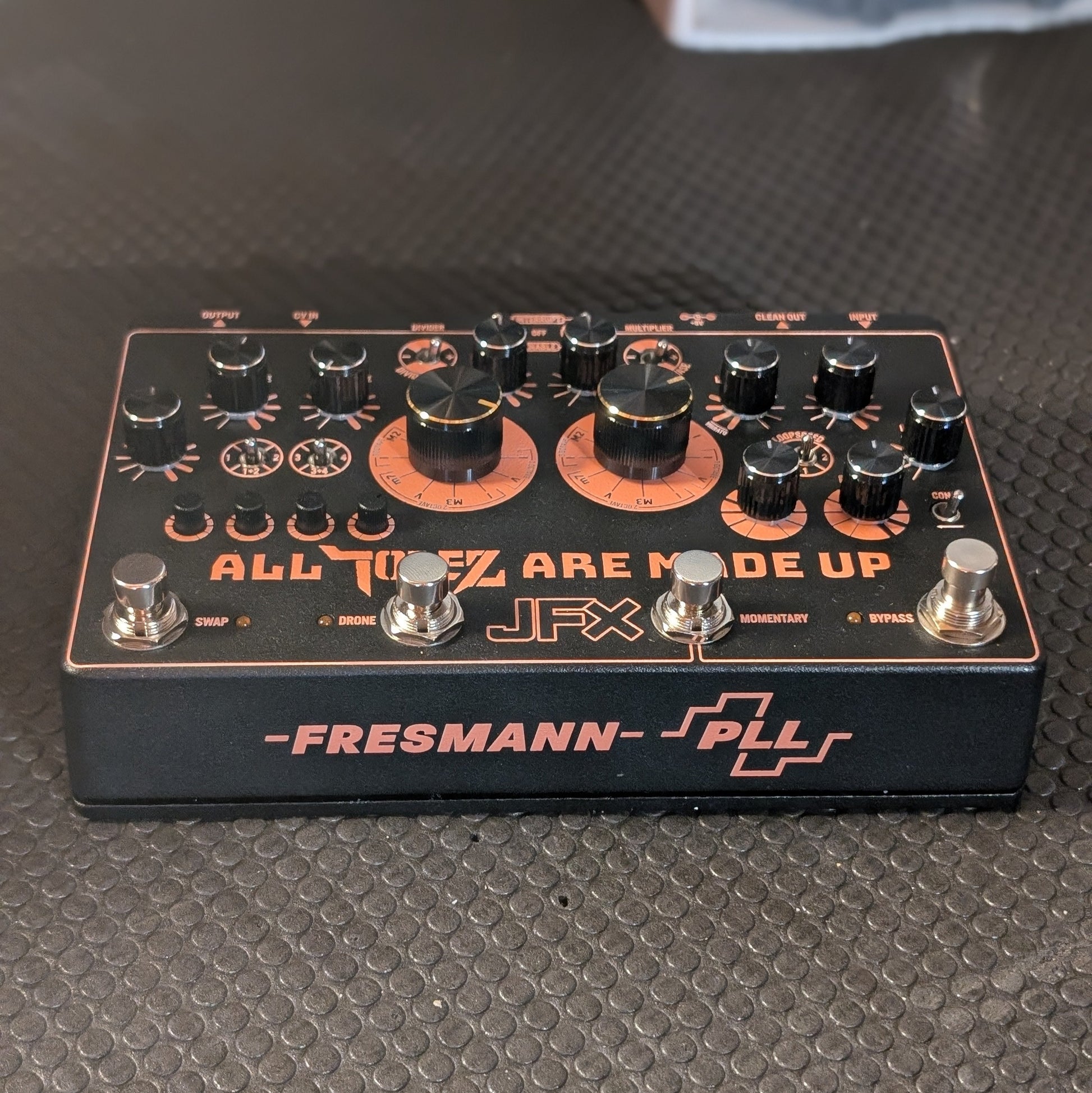 The "Fresmann" PLL (phase-locked loop) is an analog harmonizer that crushes your signal into a gated square wave, then multiplies and divides it to produce upper and lower harmonies.